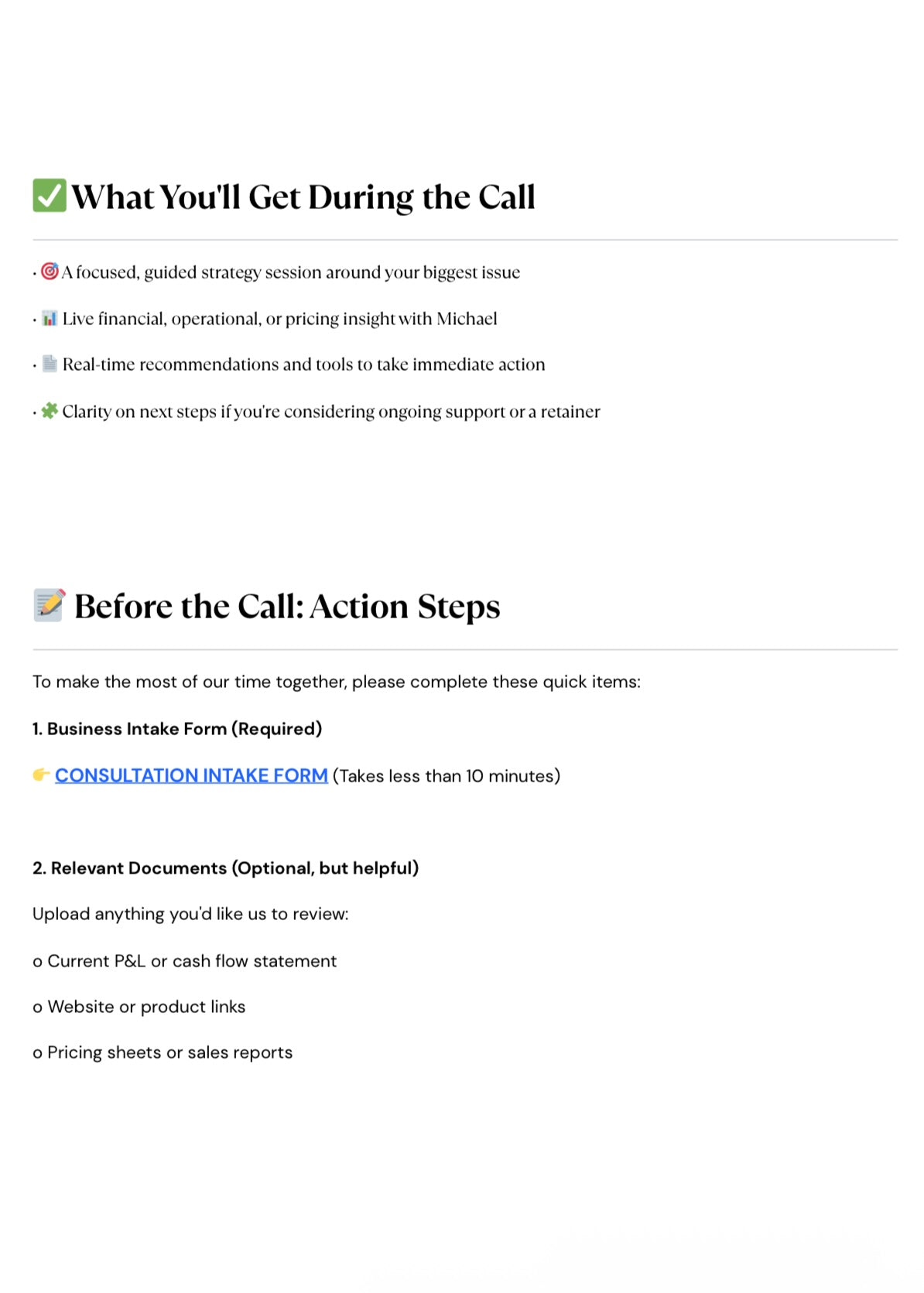 Whether you're just starting out or scaling up, this 60-minute video consultation gives you direct, focused access to a business strategist who understands your goals. We'll break down your current situation, identify blind spots, and give you a clear action plan—no fluff, just results.