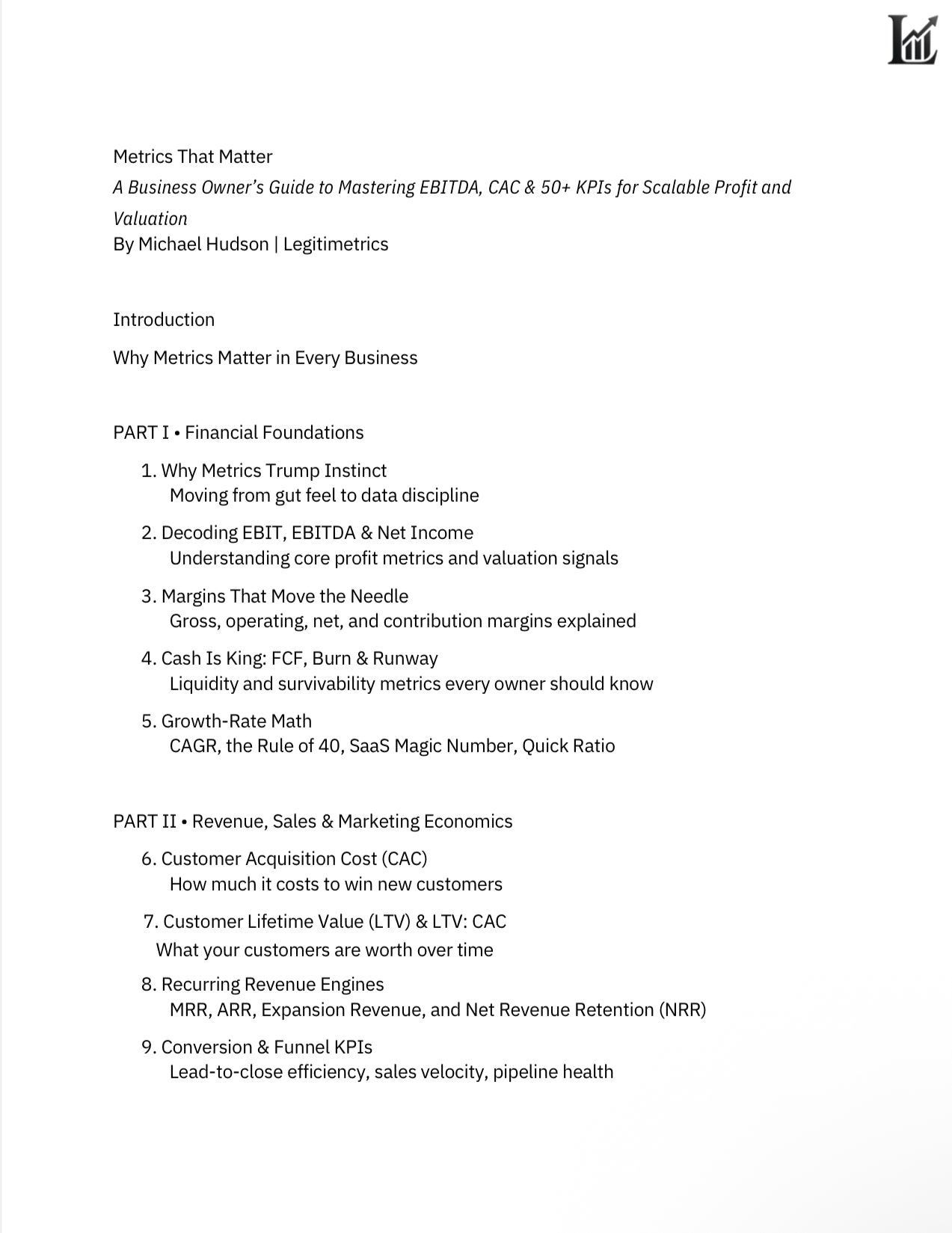 A Business Owner’s Guide to Mastering EBITDA, CAC & 50+ KPIs for Scalable Profit and Valuation